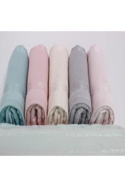 ME-SA LuxuriA Glorya Model 50×90 Çeyizlik Bukle 6 Adet Jakarlı 3D Nakışlı Asortili El Yüz Havlusu