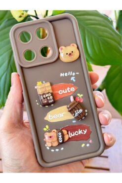 Fibaks Realme 11 4G Kılıf Tasarımlı Desenli Kamera Korumalı Ayıcık Kahve Renkli Yumuşak Silikon Kap