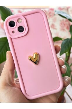 Fibaks Apple iPhone 13 Kılıf 3D Kalp Tasarımlı Pembe Desenli Yumuşak Kamera Korumalı Silikon Kapak