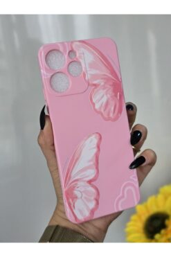 Magic Ring Xiaomi Redmi 12 Uyumlu İçi Kadife Lansman Kelebek Baskılı Kılıf