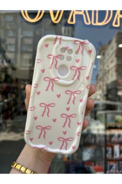 OVADA Xiaomi Redmi Note 9 Uyumlu Kurdele Ve Kalp Desenli 3D Dalga Kenarlı Kamera Korumalı Kılıf