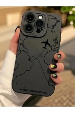 KVK PRİVACY İphone 15 Pro Uyumlu Kılıf Mat Siyah Harita Desenli Yumuşak Kamera Korumalı Kapak