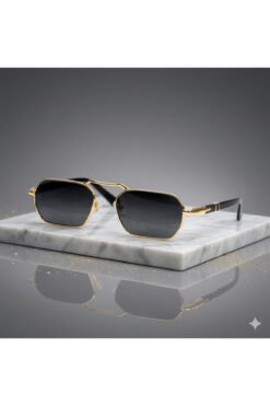 LOOKUP NEW Eşref Tek Unisex Erkek Uv400 Korumalı Kare Dikdörtgen Metal Paslanmaz Güneş Gözlüğü