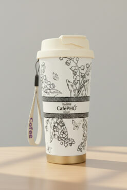 Giftino 316 Paslanmaz Çelik Zarif Çiçek Desenli 500 ml Sızdırmaz Kapak Termos Bardak Mug Araç Kupa
