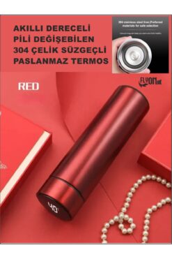 FLYONLOOK Derece Göstergeli Çelik Termos Pili Değişebilen Kamp,Araç,Ofis Süzgeçli Yeni Nesil Akıllı Mug