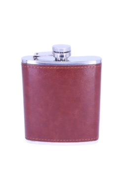 stainless steell Kahverengi Deri Kaplama Paslanmaz Çelik Cep Matarası – Hip Flask 7 OZ