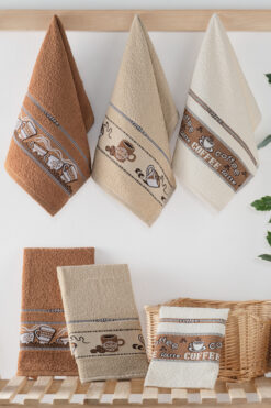 DNZGÜLCAN Kahve Desenli 6’lı Mutfak Havlusu Seti 30×50 cm | %100 Pamuk El Havlusu, Kurulama Bezi