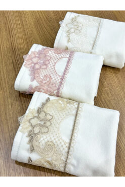 AYHANHOME 3 Lü Kadife Lüks Fransız Güpürlü Çeyizlik 50×90 El ve Yüz Havlusu