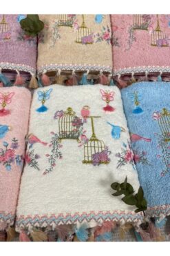 AYHANHOME Kuş Kafes Nakışlı Pamuklu Püsküllü 6’lı 30×50 Mutfak Havlu Seti