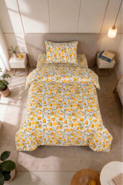 Magnolia Limon Desenli Tek Kişilik Nevresim Takımı | Sarı-Beyaz, Pamuklu, Yumuşak Doku – Çarşaflı