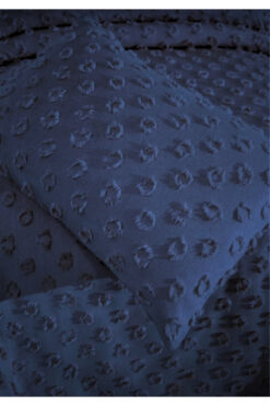 diabella Ponpon Desenli 3 Parça Çift Kişilik Yatak Örtüsü Lacivert