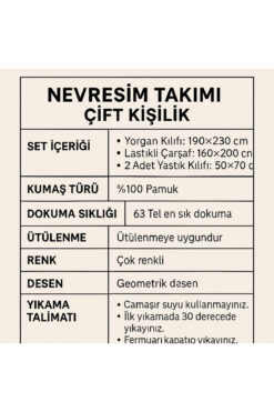 Loova Nevresim takımı çift kişilik”yorgan kılıfı+lastikli çarşaf+2yastık kılıfı” çizgili %100 pamuk