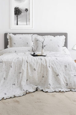 DB Çift Kişilik Nevresim Seti %100 Pamuklu desenli Süs Overloklu Fırfırlı