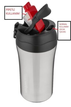 Genel Markalar Fiftyfifty Çift Kapak Sistemli Pipetli/pipetsiz 400ml Çelik Mug