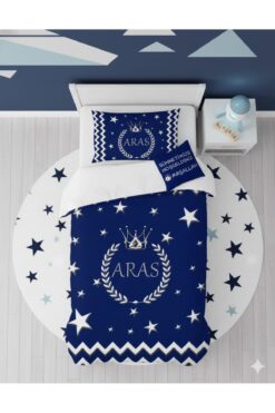 EVPANYA Kartaneli Mavi Elsa Desenli Tek Kişilik Bebek Çocuk Nevresim Seti