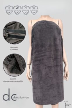 denizlicotton SuperSoft Kadife Kadın Sauna, Plaj Eteği ve Lazer Havlusu Füme 88×150 Cm
