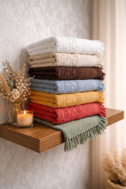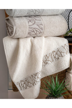 Hazangülü Buldan Üretimi Çeyizlik Lüks Jakarlı Garden 4’lü Banyo Havlusu I 70×140