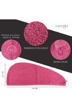Layvera SAÇ HAVLUSU | Saç Havlusu-Makyaj Havlusu-Akrilik Düğmeli-%100 Pamuklu-Makyaj Bonesi-Fuşya