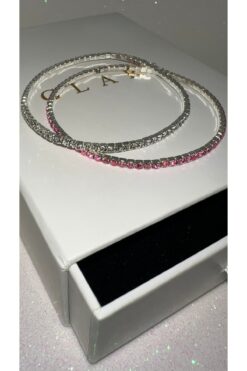 GLARE JEWELRY CO 2 ADET 1mm Pembe ve Beyaz Taşlı Gümüş Renk Paslanmaz Çelik Esnek Bileklik