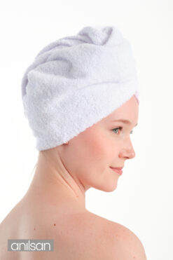 Anılsan %100 Pamuk Beyaz Havlu Bone Saç Kurutma Bonesi Kafa Havlusu Duş Banyo Bonesi Islak Saç Kurulama Bone
