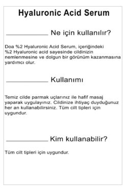 DOA KOZMETİK Hyaluronic Acid %2 Serum (Hyaluronik Asit %2) Cilt Serumu